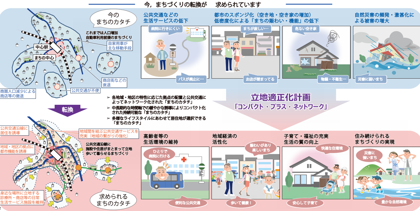 「コンパクト・プラス・ネットワーク」では、居住区を4種類に分けて、サービスやインフラの配備を検討しています。