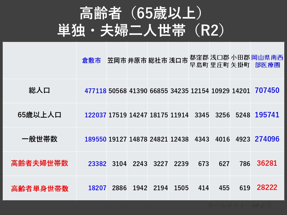 私のしらべたデータですが、65歳以上の独居か、2人暮らしの世帯は、介護施設を除くと・・・