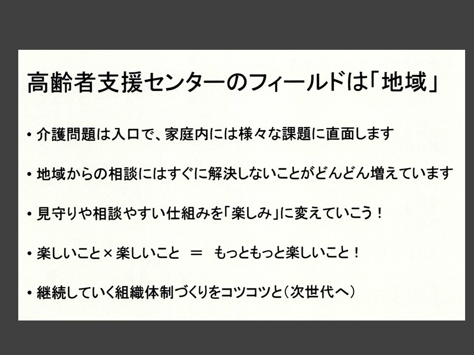 高齢者支援センターは、上記4つの柱で、機能しています。