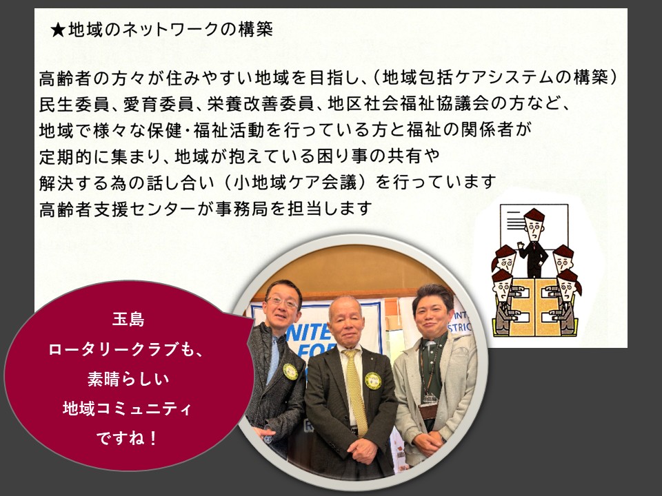 12月3日、玉島ロータリークラブで、玉島東高齢者支援センター大賀さんに、卓話いただきました。