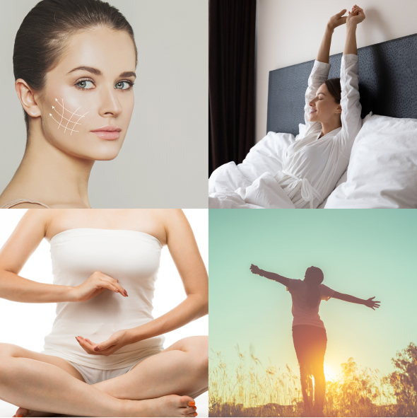 - ●肌のハリ・ツヤの改善(美肌・アンチエイジング)